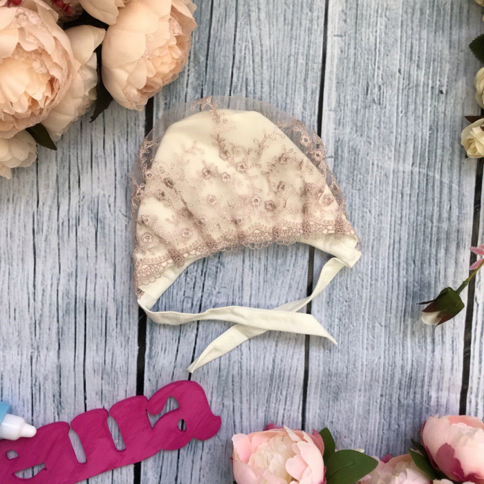 Теги: Купить детские чепчики оптом от производителя. 184. Чепчик с кружевом, хлопок 100 % интерлок цена,отзывы официальный сайт "Стеша Ухта"