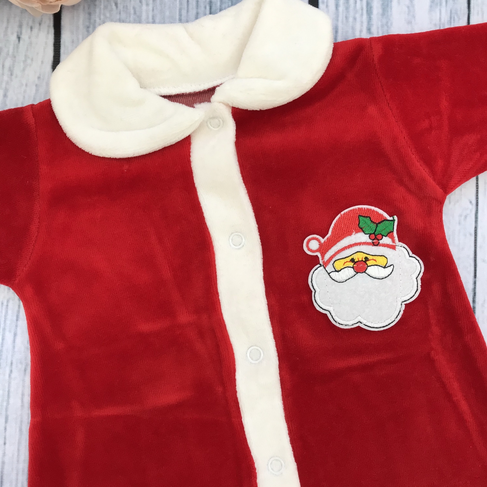 Теги: Купить оптом новогодний комбинезон от производителя. 242. Комбинезон Санта, хлопок 80% велюр 20% ПЭ 56,62,68 цена,отзывы официальный сайт "Стеша Ухта"