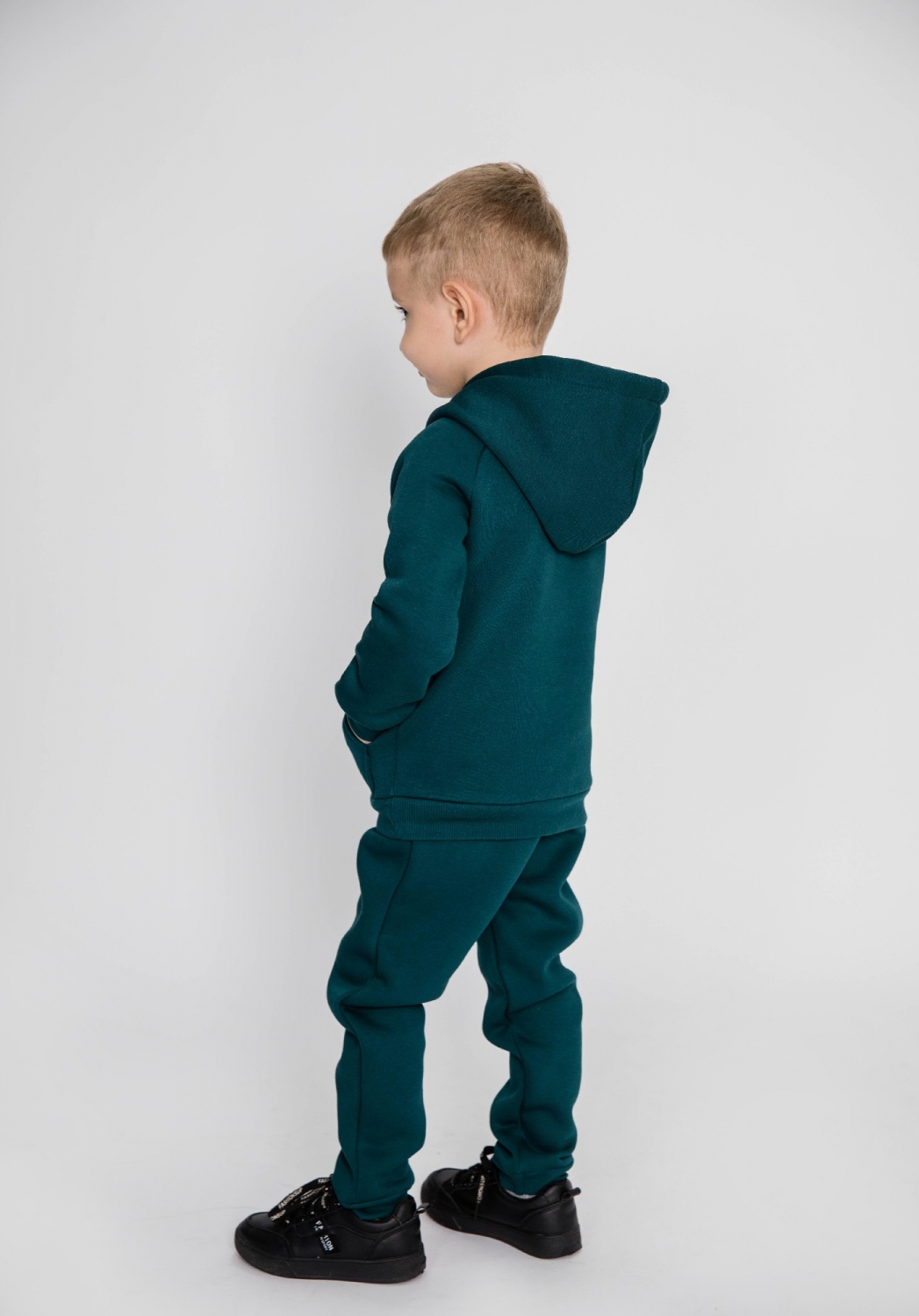 296-И. Свитшот с капюшоном + Штаны, хлопок 65%, 35% ПЭ, 3-х нитка (начес) изумрудный 122,128,134,140