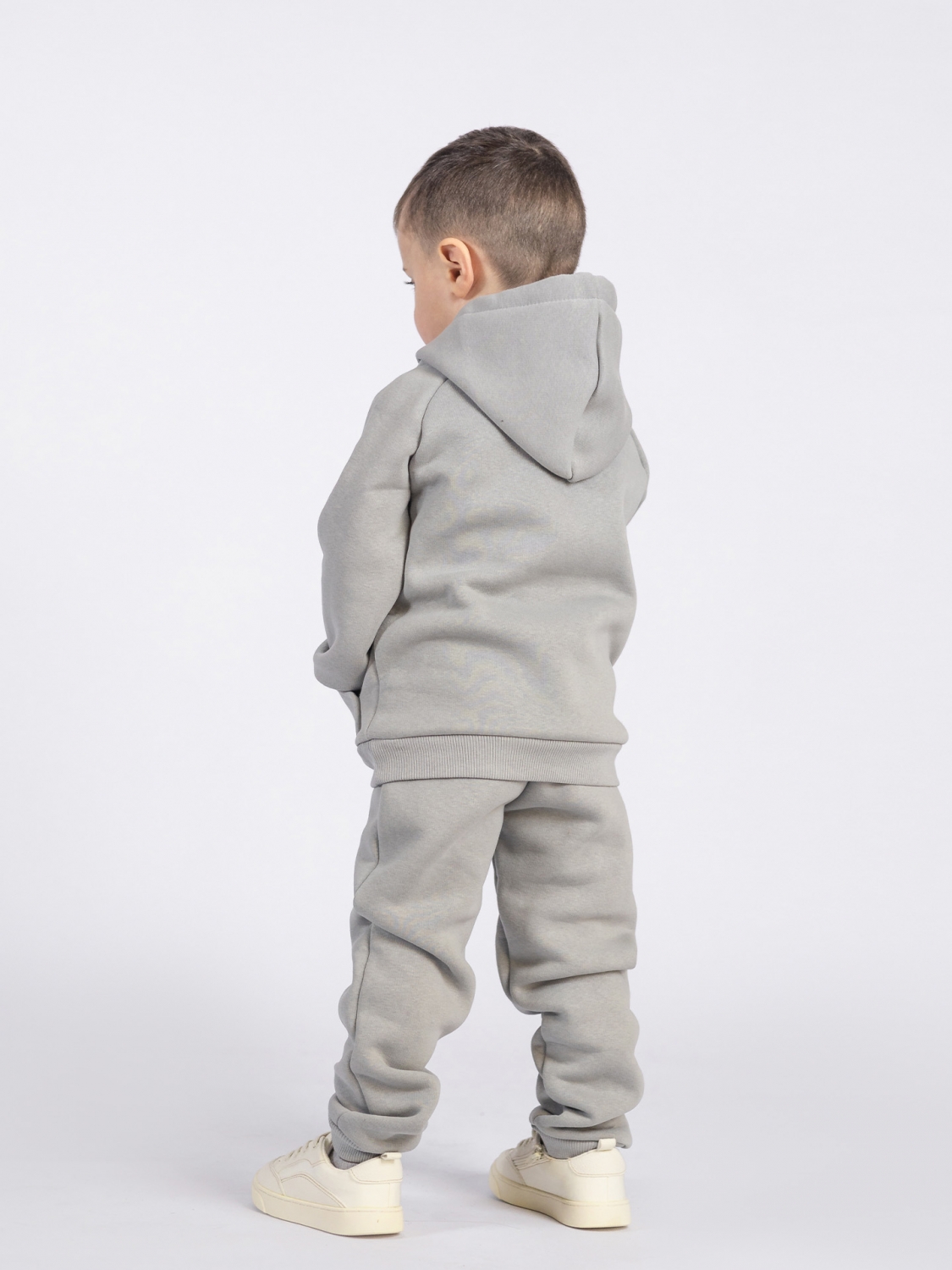 Купить оптом 296-С. Свитшот с капюшоном + Штаны, хлопок 65%, 35% ПЭ, 3-х нитка (начес) серый 122,128,134,140 в Ухте