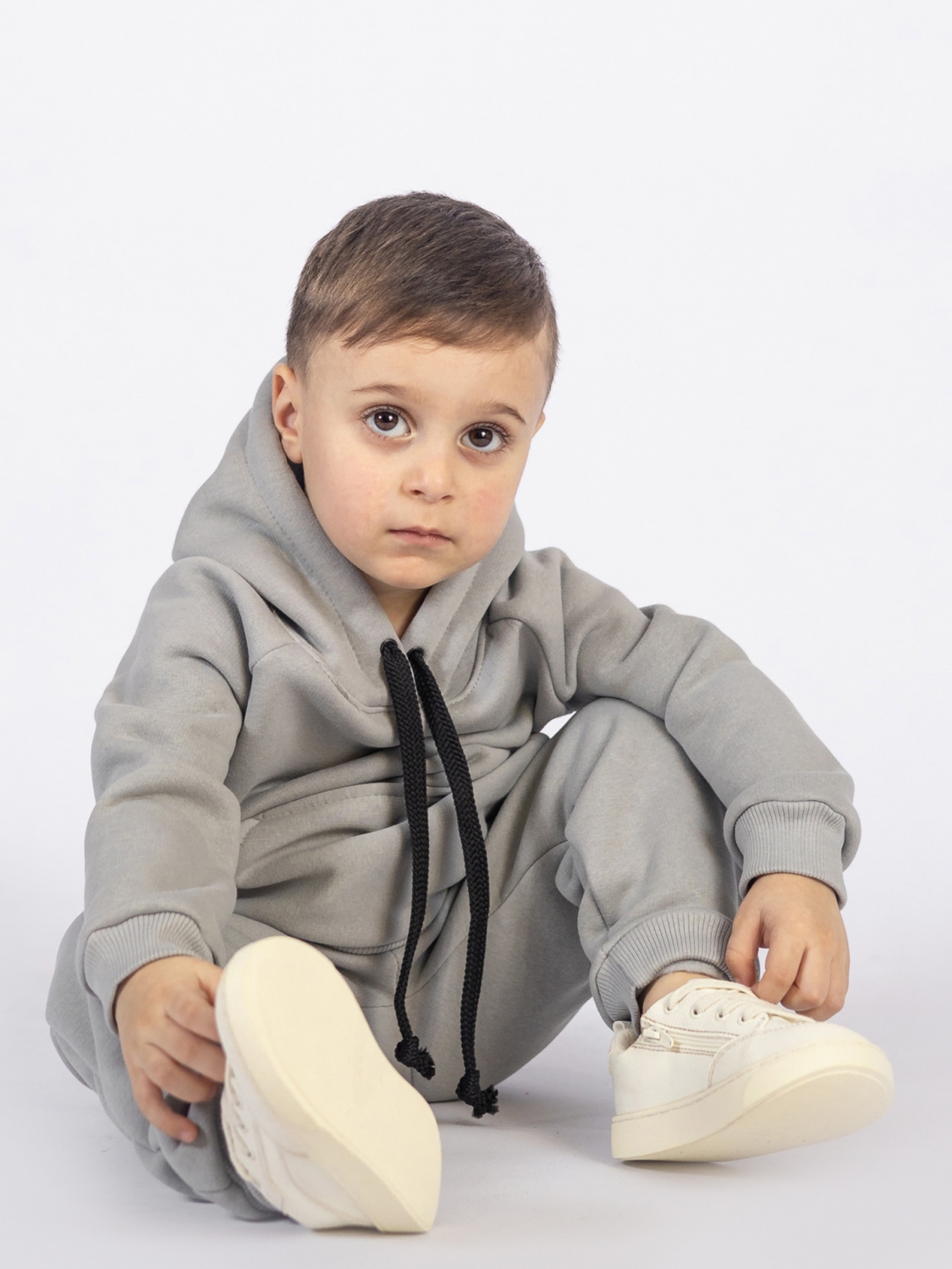 Теги: Детские костюмы оптом от производителя. 296-С. Свитшот с капюшоном + Штаны, хлопок 65%, 35% ПЭ, 3-х нитка (начес) серый 122,128,134,140 цена,отзывы официальный сайт "Стеша Ухта"